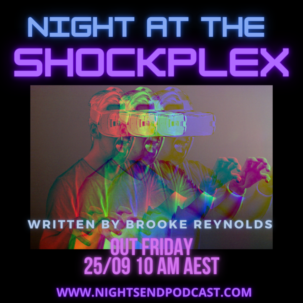 “Night at the Shockplex”, originally published at Coffin Bell, is set to go live friday in AUSTRALIA. Due to the time difference, you should be able to listen to it TOMORROW! CHECK OUT THE AWESOME GRAPHIC BELOW!