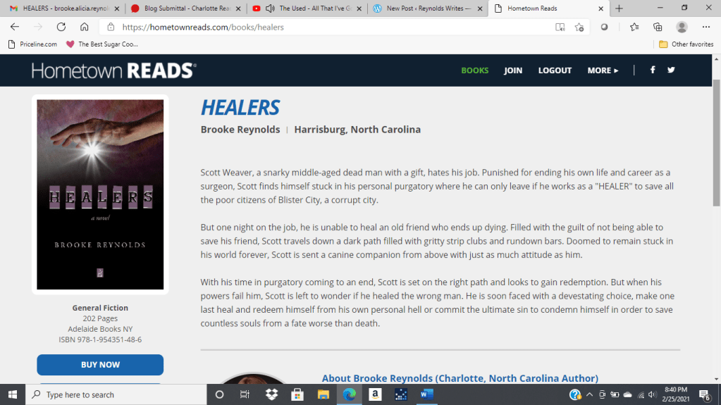 My new novel, HEALERS, is available now on AMAZON and is featured on HOMETOWN READS…a local site that showcases local authors. Check it out below.